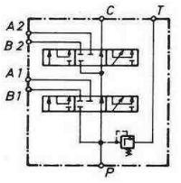 Если удлинить магистраль слива первого гидравлического распределителя простой гидросистемы, установив на ней один или несколько распределителей, то мы получим так называемое последовательное включение.