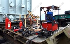 Предназначен для производства такелажных работ с высокотоннажными объектами перемещением по рельсам типа Р75. В состав оборудования входят одинаковых толкающих гидравлических механизмов (гидроцилиндр с гидравлическим возвратом штока, упор передний, захват).