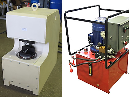 Гидравлический блок управления на насосной станции (гидрораспределитель, реле давления, клапан предохранительный перепускной, манометр) позволяет в полуавтоматическом режиме выполнять операции по опрессовке при постоянной эксплуатации.