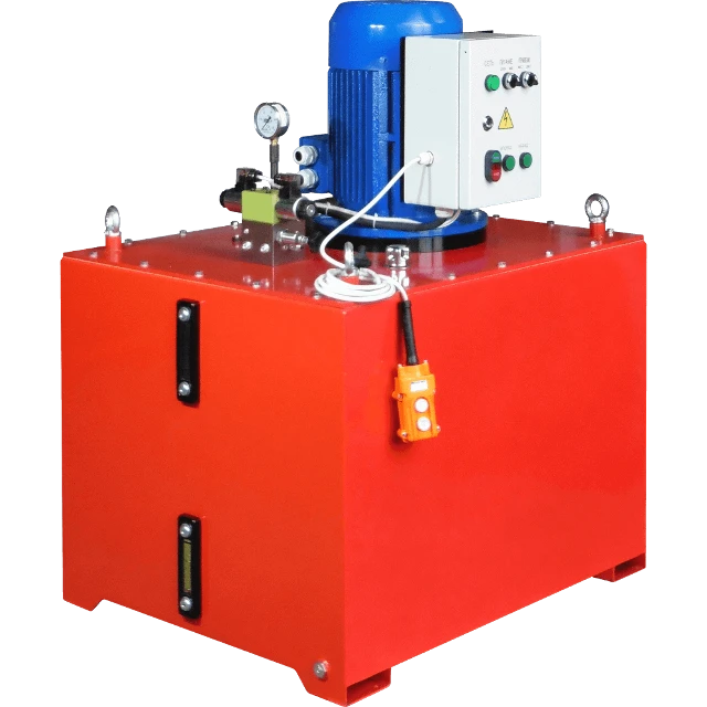 Насосная станция с электрическим приводом, электромагнитным управлением, номинальным давлением (по умолчанию) 70 МПа, подачей 10 л/мин, 3-х позиционным гидрораспределителем объемом бака 300 литров, трехфазным электродвигателем 380 В и одноступенчатым насосом.