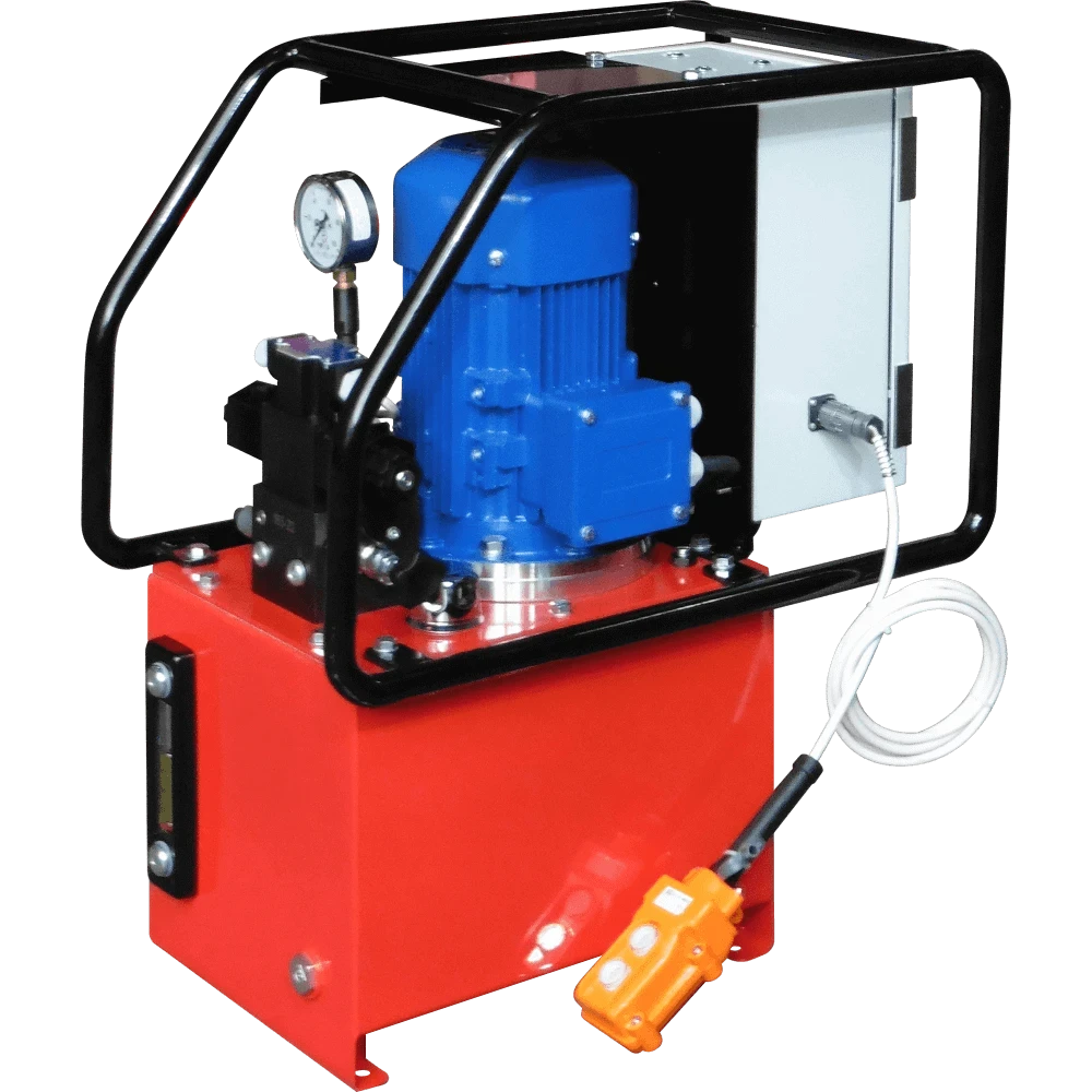 Насосная станция с электроприводом 380 В, электромагнитное управление, номинальное давление 70 МПа, подача РЖ 2 л/мин, объем бака 10 литров.
