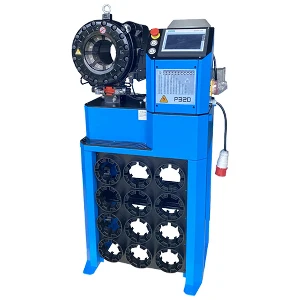 Samway P32D с электрическим приводом и цифровым управлением способен развивать давление до 280 т. Предназначен для обжима РВД с внутренним диаметром обжима от 6 мм до 51 мм. Рукав до 2″ 4SP. Производительность составляет 1200 единиц в час. В поставку оборудования входят пресс-формы (кулачки) в количестве 13 комплектов , ножная педаль, стойка-хранилище для кулачков, устройство для быстрой замены кулачков.